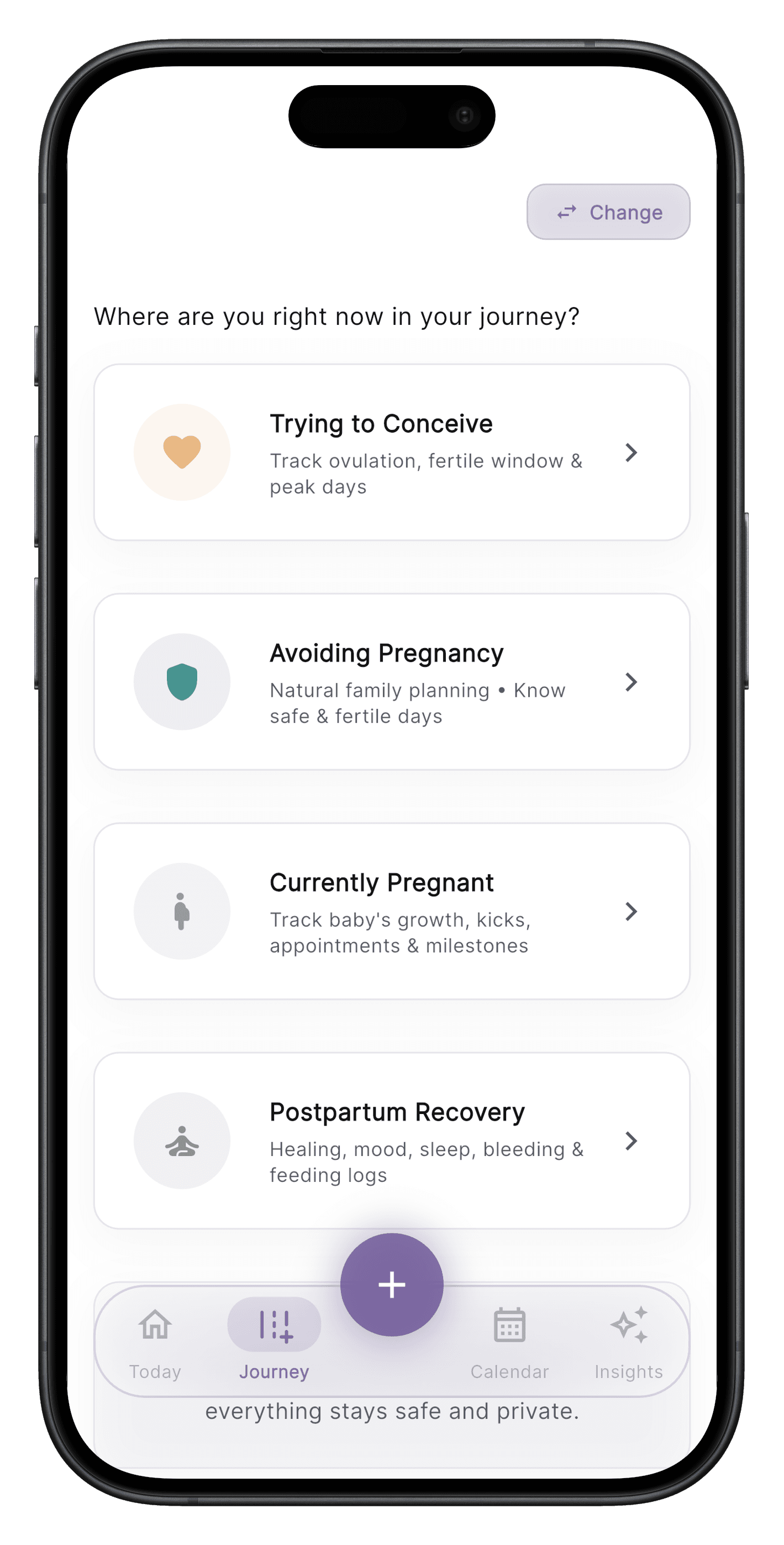 100% local storage by default. No cloud servers, no tracking, no selling to advertisers. You choose what, if anything, leaves your phone. AI that learns YOU - not generic averages. Get increasingly accurate period predictions, ovulation windows, and fertility insights as the app learns your unique patterns.