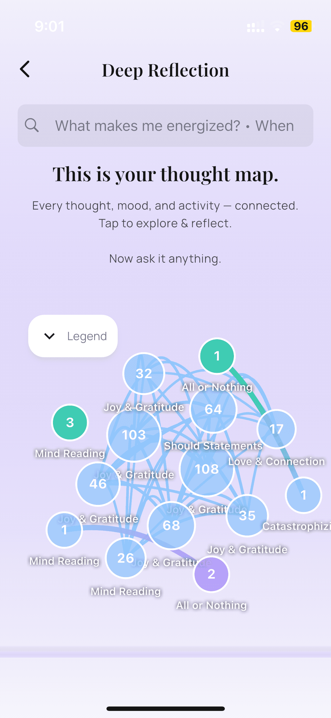 Nueo's on-device AI analyzes your entries to reveal patterns you'd never see on your own. You'll quickly identify what consistently energizes you.