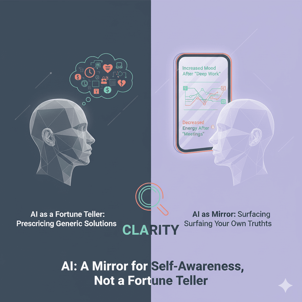Real AI should do something different. It should help you understand yourself better—not replace your thinking. It should surface what's true about you, not tell you what to do.